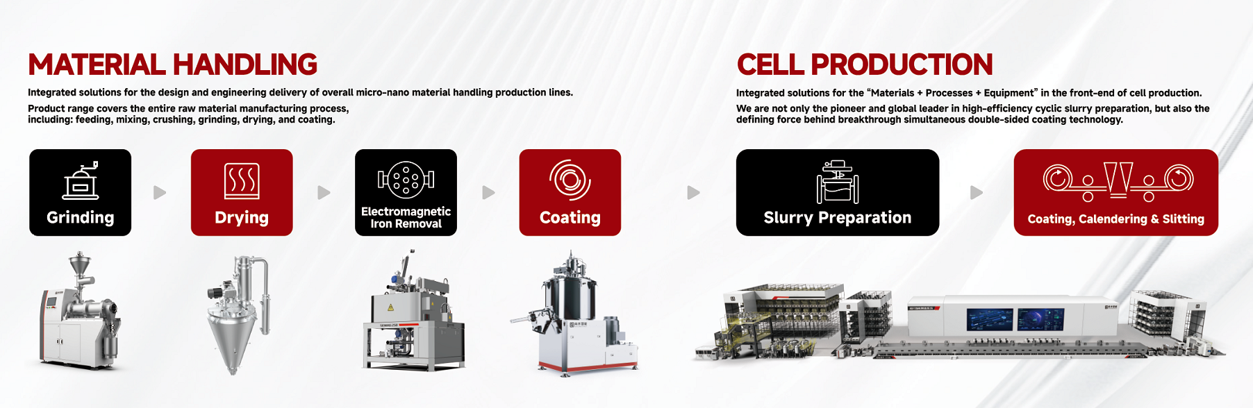 We can provide integrated solutions for the “Materials + Processes + Equipment” in the front-end of cell production. In the field of slurry preparation, our pioneering “Circulating High-Efficiency Slurry Preparation System” has established a groundbreaking technological route that effectively addresses long-standing challenges including inadequate pre-mixing, low efficiency, high energy consumption, poor consistency, and excessive space requirements.After multiple rounds of technological iteration, our slurry preparation technology has become one of the mainstream processes in new energy battery slurry preparation and has secured patent authorization in China, the United States, Europe, Japan, South Korea, and other countries and regions.