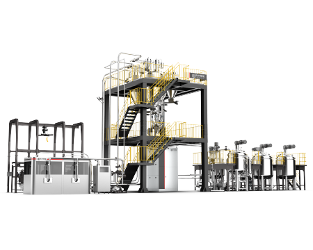 双螺杆制浆系统具有制浆效率高、分散效果好、单位能耗低、产能大、智能化程度高等特点,适配多种制浆工艺和材料体系。单套系统产能最高可达2.500Lhh,连续计量动态精度±(0.5-5)%。