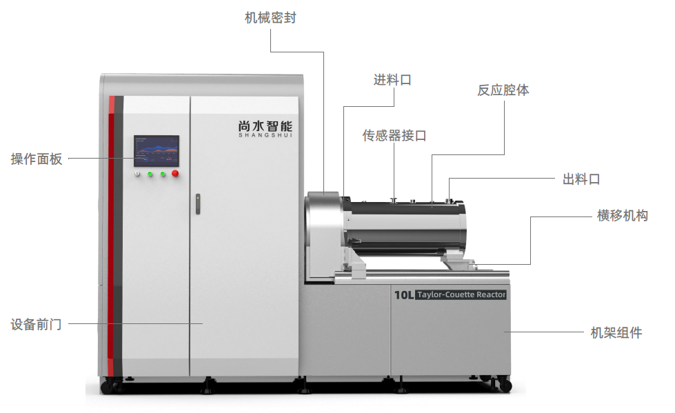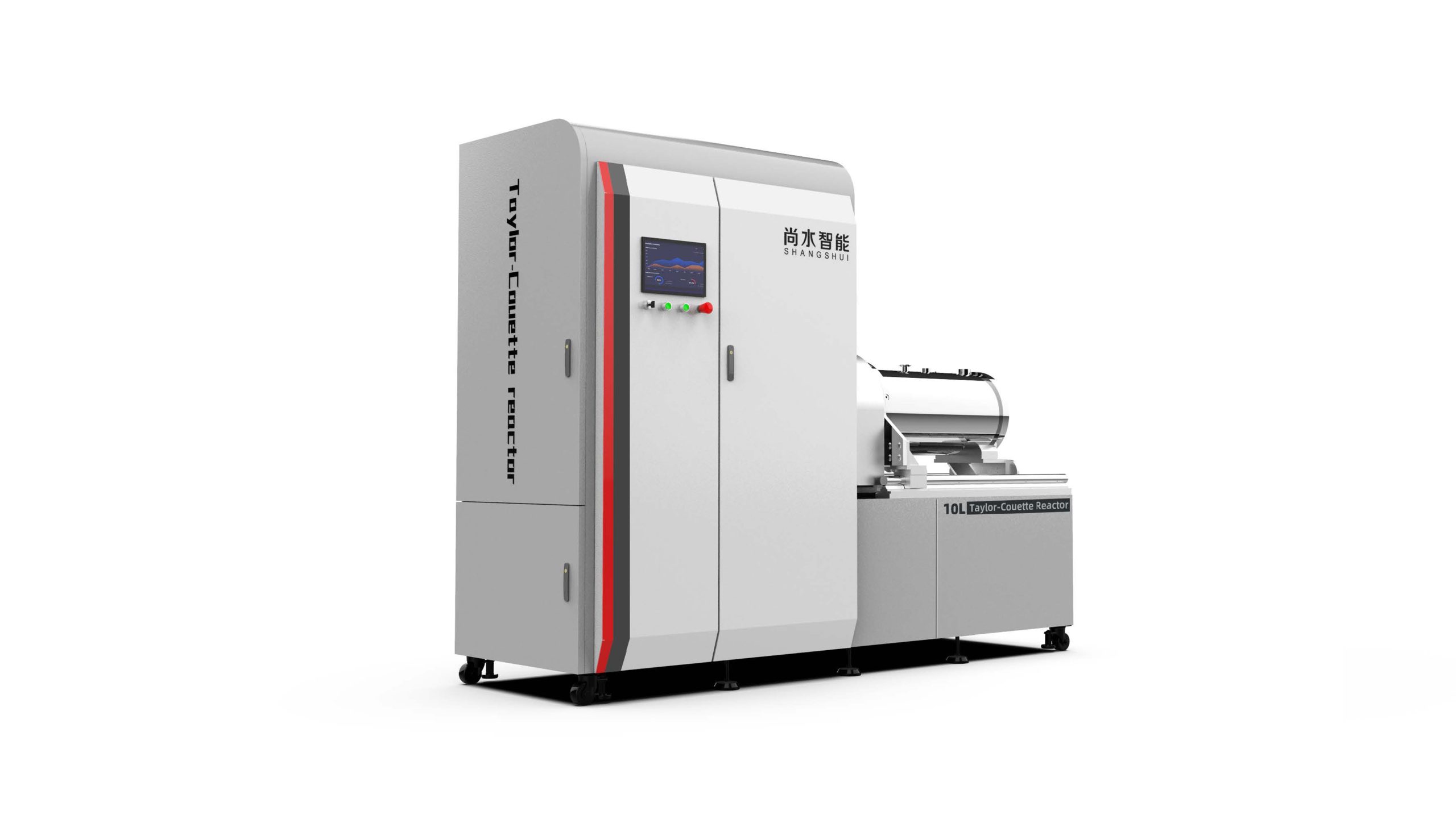 物料在相对旋转的两同轴圆筒间(通常为内圆筒旋转而外圆筒静止),当内圆筒转速高于某一临界值后,离心力作用将在沿圆筒轴线方向上诱导产生一系列正反交替、有序排列的环形涡(即泰勒涡),这种强加于沿转轴旋转主体流动上的二次流动就被称为泰勒流。泰勒反应器内流态稳定,可使工艺条件保持长期恒定,从而保证了颗粒的连续制取效果。